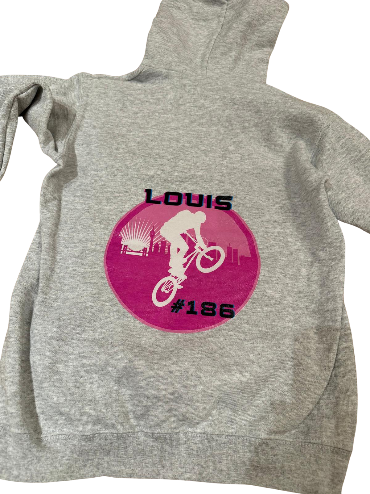 BMX full color print A4-formaat: naam, nummer en indien gewenst BMX-club worden toegevoegd. De kleur van de achtergrond alsook de naam en het nummer zijn vrij te kiezen. De prent wordt ook in het klein op de voorkant geplaatst.