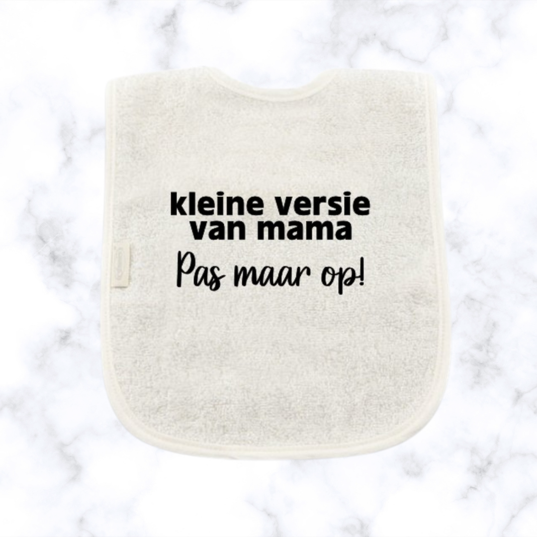 Verras de mama met dit op maat gemaakte slabbetje. Leuk als kraamcadeau, moederdagcadeau, geschenkje voor Valentijn, ... Noem maar op, er is altijd wel een leuk moment om dit als geschenkje te geven.